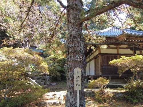 本坊庭園には、海棠(かいどう)という樹木が植えられています。バラ科の樹木で、4月中旬頃、濃い桃色の花を多数咲かせるのですが、こちらの木は樹齢350年にもなるそうです。大阪府の天然記念物にも指定されてるカイドウは、枝を支柱で支えており、大事に扱われていることが分かります。