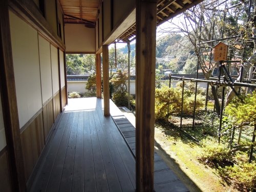 本坊隣の篠峯殿や渡り廊下からは、庭園や境内の山々まで見渡せます。弘川寺の景色や紅葉が堪能できるスポットと言えるでしょう。