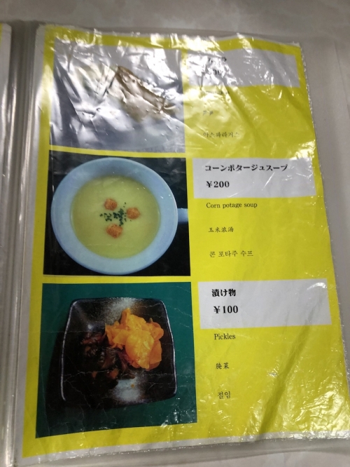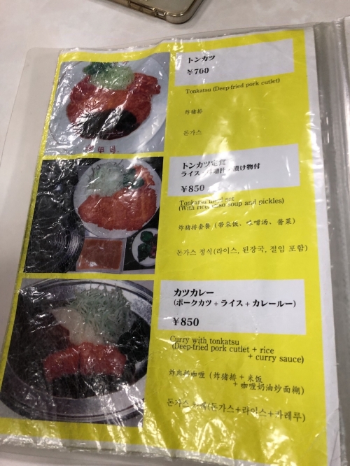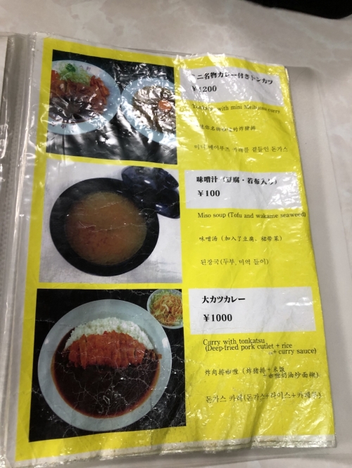 メニューは日本語・英語・中国語・韓国語で記載されており、自由軒・難波本店の人気のほどがうかがえます。 全てのメニューに写真と文章の説明があり、 どの国の人が見てもわかりやすくて、いいメニューだと思いました。