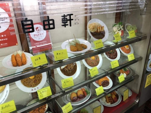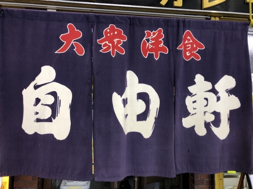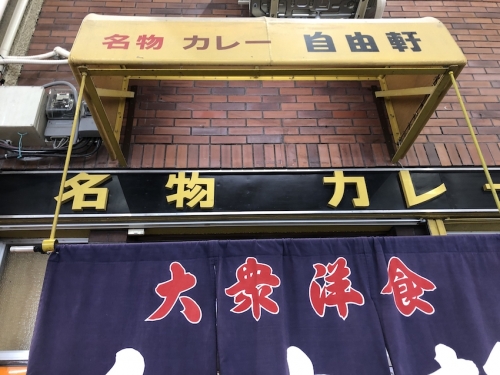 「大衆洋食・自由軒」「名物カレー・自由軒」などと書かれた看板や暖簾が出ているので、通ればすぐにわかるような雰囲気で、目立っています。