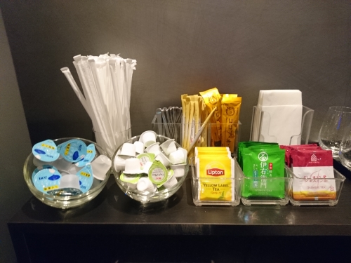 マシンで入れる本格的なコーヒーやカプチーノ、エスプレッソの他に、ティーバッグの紅茶やお茶など、こちらも種類豊富に用意されています。