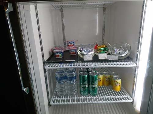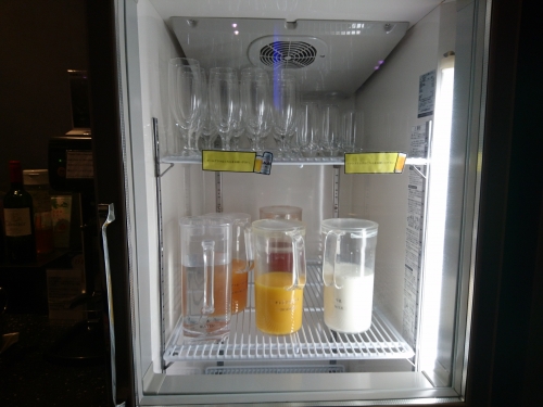 他にもオレンジジュースや牛乳、ミネラルウォーターやペリエなども別の冷蔵庫にあります。