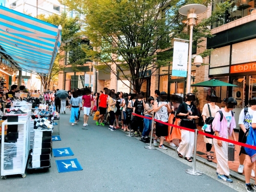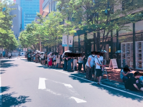 最後に、モッチャム梅田茶屋町店のOPEN初日の様子を紹介いたします。筆者夫婦が並びだしたのは9:00。OPEN3時間前で、すでに10人ほど並んでおりました。