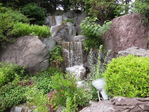 小さな滝もあり、水が流れ落ちる心地よい音を聞きながら散策できます。この滝の横には、甘泉殿(かんせんでん)と呼ばれる休憩舎があります。この急傾斜の名前は、そばに清く甘い泉が湧くことに由来しているそうです。