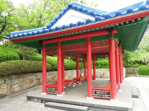 園内には、堺市にある河川に見立てた渓流や池があり、印月橋、映波橋といった橋もかかっています。緑が多く、季節の花々も咲くので、とても落ち着いた気分で散策できるでしょう。