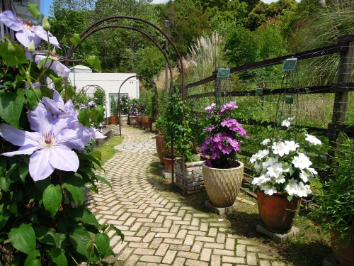 また、バラ園のすぐそばにあるクレマチス園も、青や水色、紫といった様々な品種の花が楽しめます。
