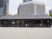 写真:あやか 大阪城公園内の噴水 |  写真:あやか ジョーテラスオオサカ フォトスポットのベンチ |  写真:あやか スターバックスコーヒー大阪城公園店の外観 |