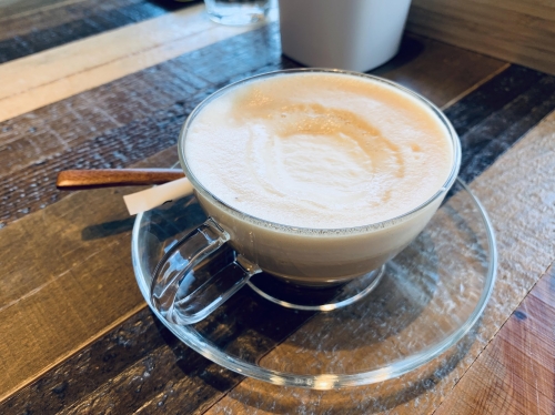 左が「チーポ・オイト・オリジナルブレンド(600円)」、右が「カフェラテ(600円)」です。他にも様々なコーヒーメニューや、ケーキ・パンなどのメニューもあります。