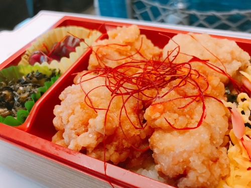 大分県中津市のご当地グルメ、中津唐揚げがたっぷり入っている駅弁です!中津唐揚げは、醤油に、ニンニク・ショウガなどの薬味を使って味付けがされた唐揚げです。