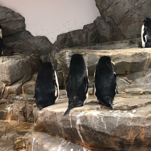 ・大きな水槽の周りをぐるぐると回って鑑賞しました。イワトビペンギン、ジェンツーペンギン、キングペンギンかわいい!