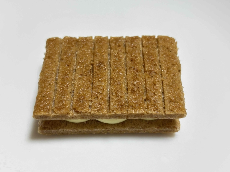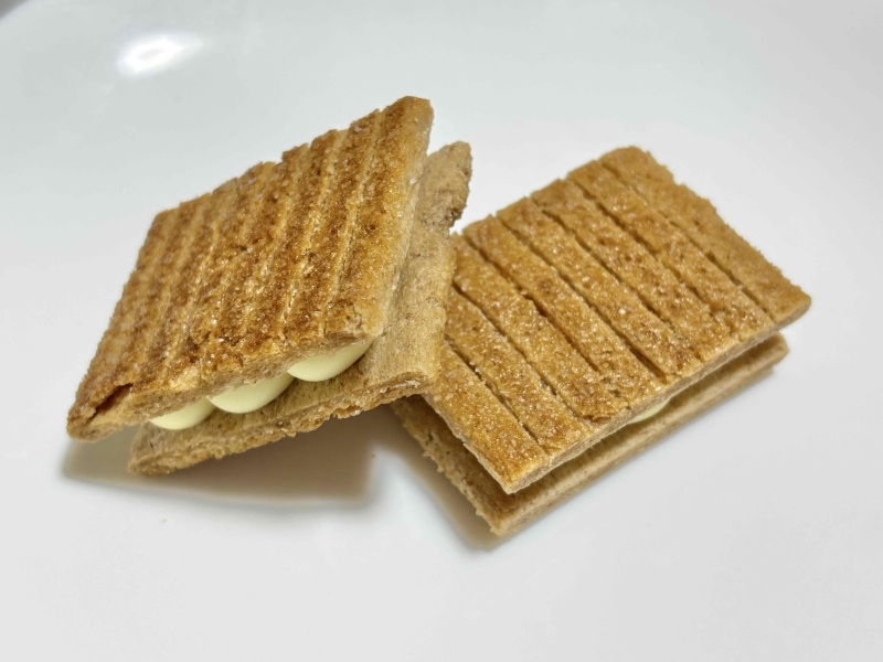バター香る甘じょっぱいザクサク食感のシリアル生地との相性も抜群で、ポリューム・味ともに満足できるリッチなお菓子です。