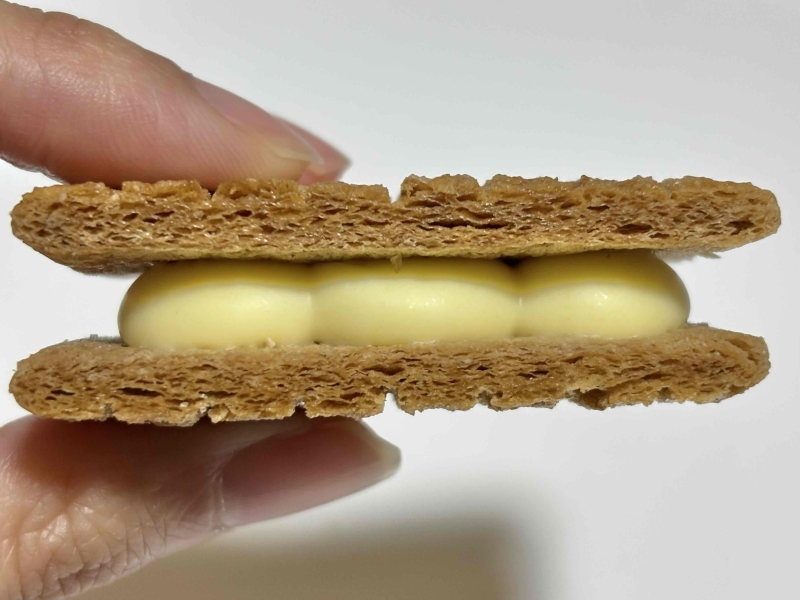他の味のシュガーバターサンドの木と比べて、中のホワイトショコラがぷっくりとしており、厚みがあります。