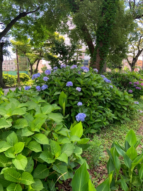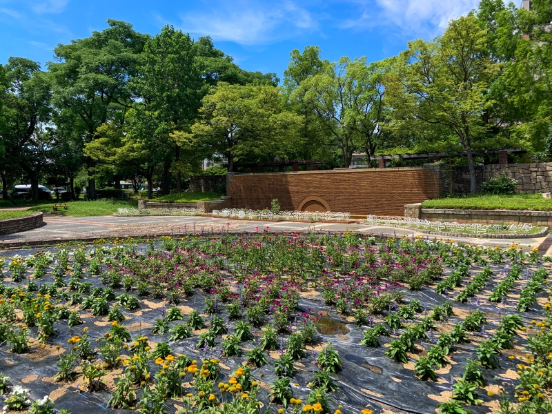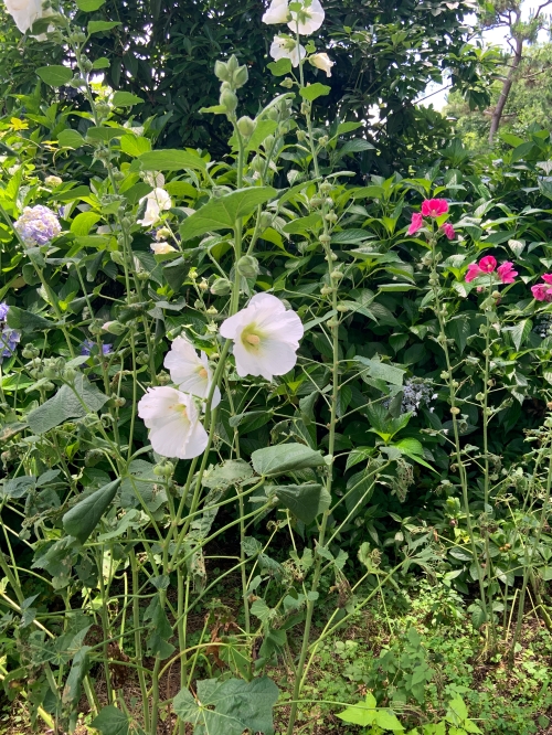 筆者が訪れた6月下旬には、アジサイやタチアオイといった初夏の花が見られました。また、小さなひまわりなど、数種類の花が咲いており、観賞している人の姿も見られました。
