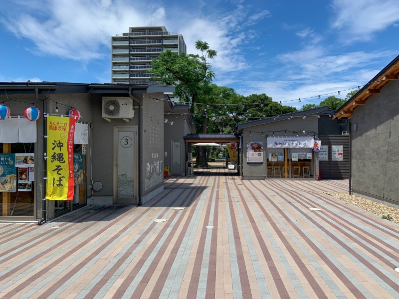 汐かけ横丁は、住吉公園の一角に2024年7月にオープンした屋台街です。和カフェや中華、メキシコ料理など、個性豊かなお店が15店舗ほど入っています。