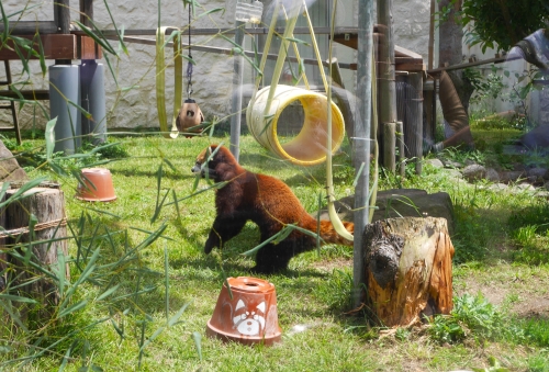アフリカサバンナゾーンの周辺では、オオカミやアライグマも見られます。アライグマが遊ぶ様子はとてもかわいいので、ぜひ見てみてください。