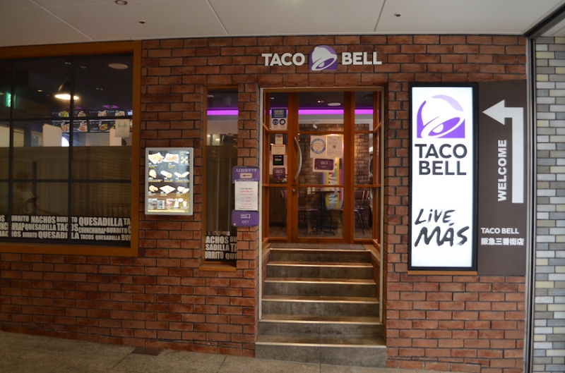 タコベルは、日本では東京を中心に展開しており、大阪には3店舗あります。「タコベル・阪急三番街店」は梅田にある店舗で、梅田は東京でいう渋谷や新宿のような場所です。ちなみに大阪の一号店はタコベル・道頓堀店です。