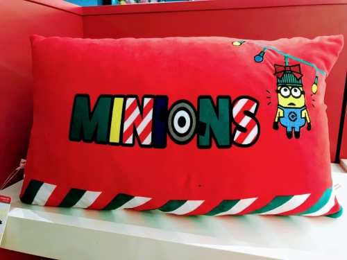 表が緑色、裏が赤のクリスマスカラーでできたクッションです。サンタクロースのミニオンたちが可愛く、クリスマスプレゼントに貰ったら嬉しいグッズですね!