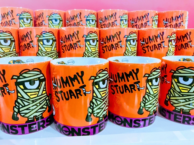 「スチュアート」という、一つ目でクールなミニオンが、包帯ぐるぐる巻きになったミイラに変身!オレンジ×紫のハロウィーン色と、かわいいミイラのスチュアートがコラボレーションしたマグカップで、大人気。また、お土産としても比較的購入しやすいリーズナブルな値段となっています。
