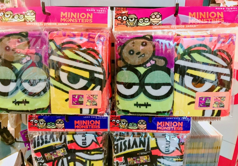 老若男女問わず、誰でも使用できるタオルも、ミニオンモンスターズとコラボしたものが販売されています。上のものは、ハンドタオル用の少し小さいサイズのもの。