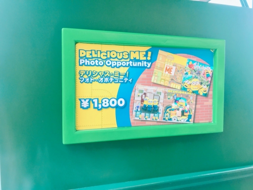 拡大銃で巨大化したのは、コック帽をかぶった料理中のミニオンたち。そんなミニオンたちと写真が撮れるスポットです。撮影スポットのすぐ横にあるお店「デリシャス・ミー!」で売られている、クッキーサンドなども巨大化されて飾ってあります!