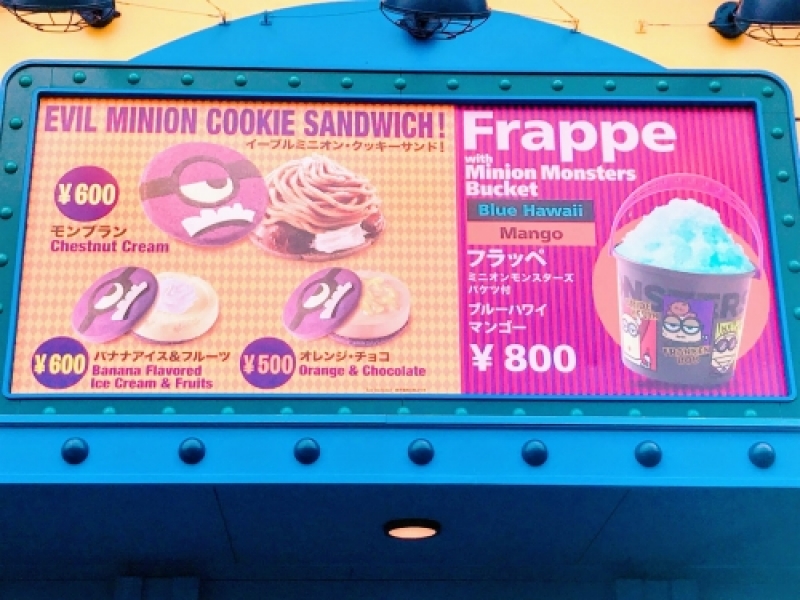 ミニオン・パークには、小さなフードショップが2店あります。どちらも、ミニオン・パーク限定で、かつ食べ歩きもできるようなタイプなので、パーク巡りにも便利です!