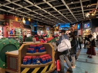 写真:WriterA テレサ・クッパ・クリボーなどの被り物は大人気! |  写真:WriterA 任天堂エリアのショップ「ワンナップ・ファクトリー」 |  写真:WriterA マリオ・モーターズ |