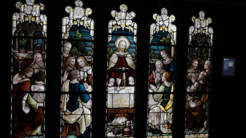 また2階には聖書で有名な「最後の晩餐」や「種をまく人」などの作品も展示されています。目の前で光り輝くステンドグラスの作品を鑑賞してみて。