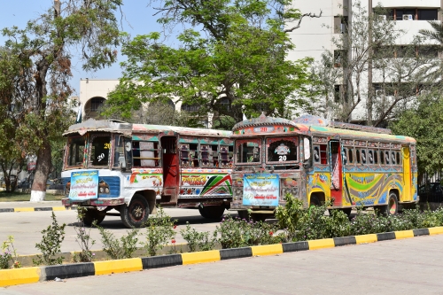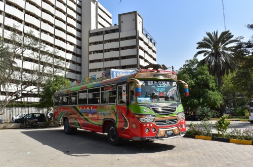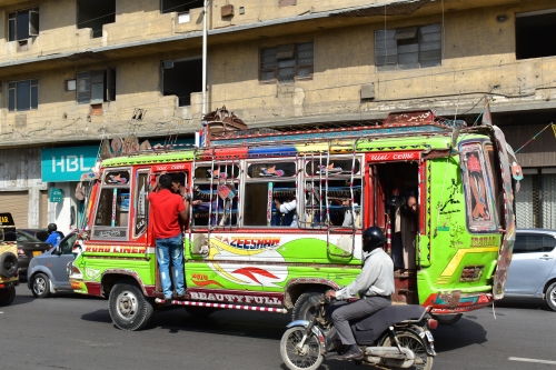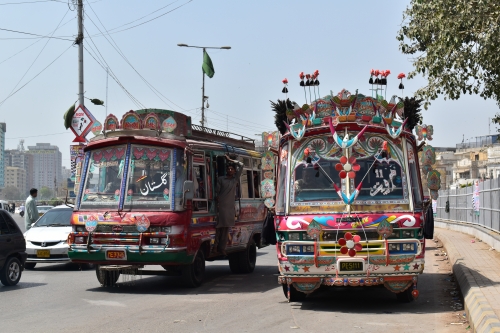 パキスタンはデコトラも有名ですが、カラチではバスもこのようにデコレーションされています。