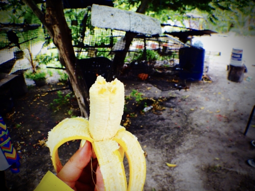 途中、フルーツバットというコウモリを飼っているお宅に寄り道し、モンキーバナナをご馳走になることもできました。とっても甘くて美味しい!フルーツバットは出発港でも見ることができます。とても可愛いですよ。