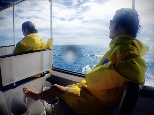 外洋に出た時はまさにスプラッシュマウンテン状態。上下左右に揺れ、波しぶきに耐える!なかなかスリリングなクルージングでしたが、華麗なテクニックでレモンちゃん、無事にリーフ超えを果たしてくれましたよ!