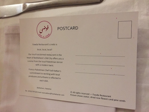 こと接客に関して、イスラエルでは高価格で評判のレストランでも質が確保されていないことがままあるので、それに関してはファウダを称賛せざるをえないといった印象です。中東で「接客サービス」という概念を思い出させてくれる稀有なレストランでした。