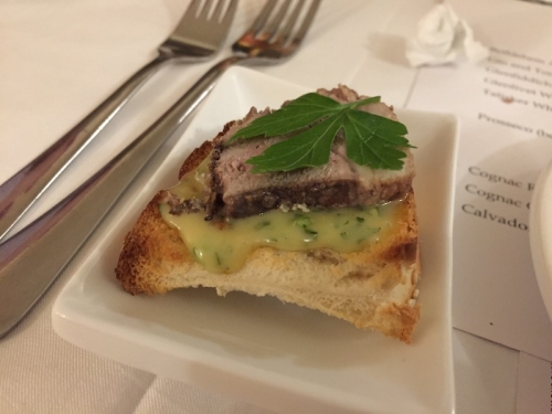 2はスペインのタパスやイタリアのブルスケッタに似ていました。カレー風味のソース、牛肉、パセリの組み合わせです。