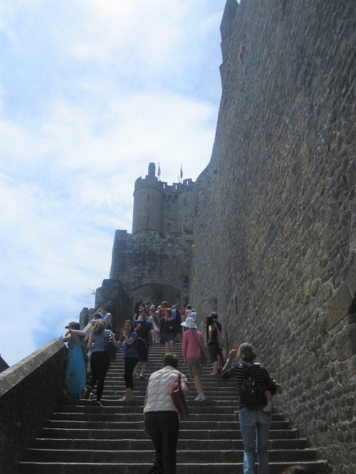 モンサンミッシェル観光の目玉は修道院の見学です。島と一体化してそびえ立つ修道院は、966年に建築が始まり、数世紀にわたって増改築を繰り返してきました。