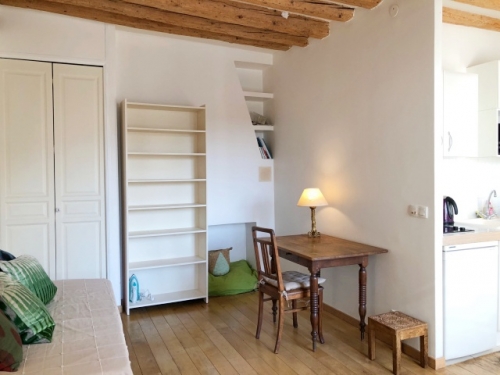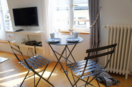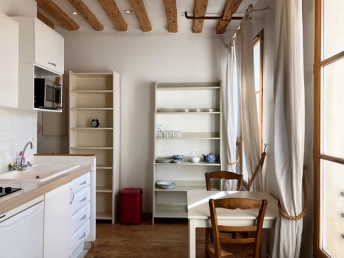 ルーブル美術館、オペラ界隈へも徒歩数分というリッチでありながら昔の静かなパリの雰囲気が残るシックな地区。教会に沿った小さな通り沿いにあるので、夜は静かに過ごせます。エレベーターなしの日本式5階とちょっとハードルは高いけれど、管理人常駐でセキュリティは万全です。