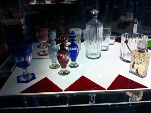 一階にはバカラクリスタル製品が売られているブティックがあります。テーブルの上には歴代全てのバカラグラスシリーズが並べられており、とても豪華です。階段を上がると、二階は美術館になっています。
