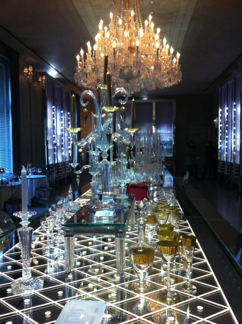 展示品のクリスタルグラスや食器類だけでなく、館内のあらゆる所に使われている様々な形のシャンデリアまで、全てがバカラクリスタル製品で、頭がクラクラするくらい豪華で美しい美術館です。