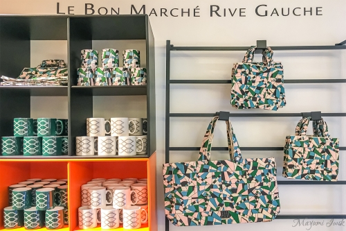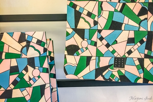 お土産の定番であるお店の「ロゴ入りアイテム」も、こんなにシックで洗練されています。独特なカラーリングが個性的なジオメトリック柄のバッグや、さり気なくロゴが入ったマグカップなどは、あまり人と被らないギフトとして喜ばれそうです。