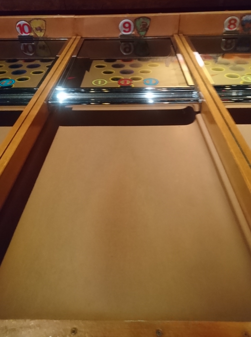 参加者はボールを転がして目の前にある穴に入れます。穴の色によって点数が異なり、その点数分、自分の馬が前に進みます。