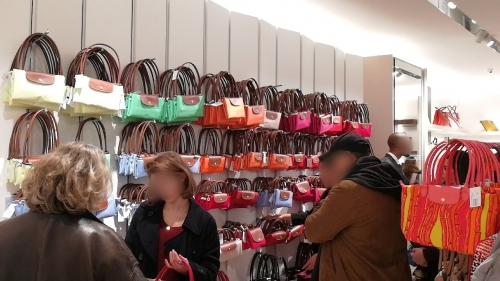 日本でも女性向けのトートバッグ “ラ・プリアージュ”シリーズが大人気の、1948年パリ発祥のブランド「Longchamp(ロンシャン)」。パリ市内には多くの店舗がありますが、アウトレットはやはりお手頃に買えるということもあってたくさんの女性客で溢れています。