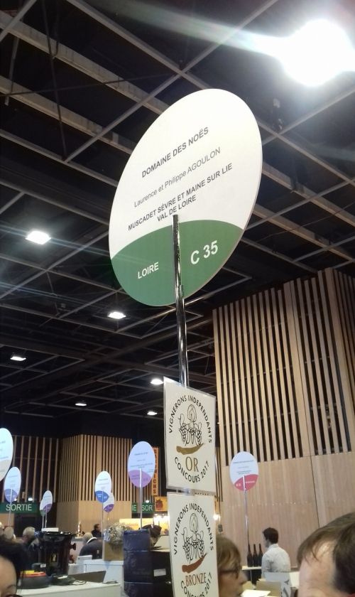 パリのサロン・ド・ヴァン は春と秋で会場が変わりますが、会場の内装は毎回同じです。ワイナリーの地方によって色分けされた看板を見ながら、気になったワイナリーのブースに声をかけ試飲をさせてもらいます。大抵のブースでは複数種類のワインを用意していて、気になるものを選んで試飲させてもらうというシステム。