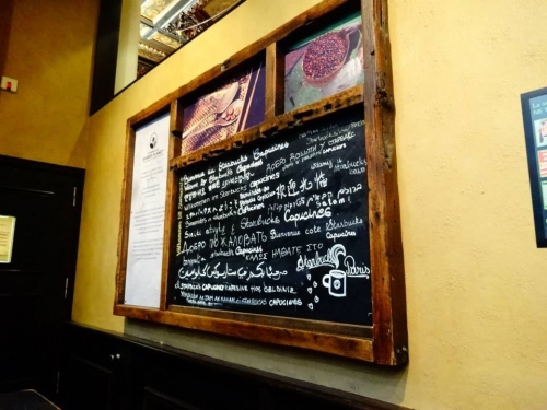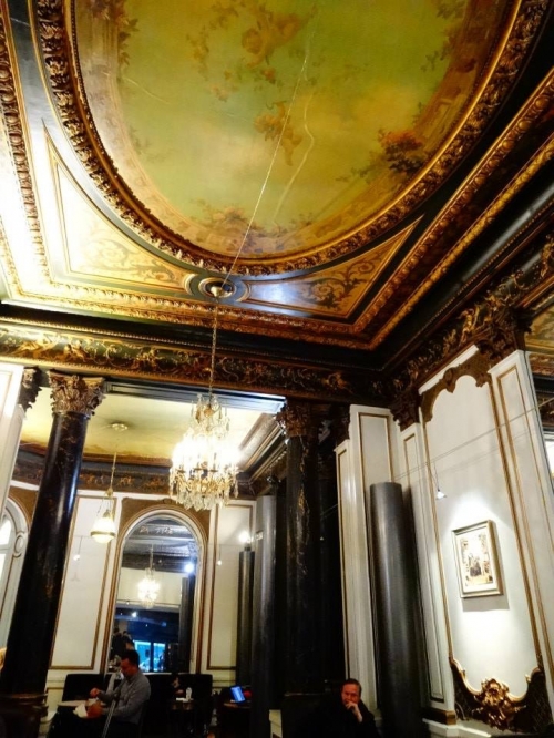店内にはいくつもシャンデリアと天井画があり、それを見て回るのも楽しいです。「これ無料で見て良いの?」と思ってしまうほど豪華な店内で、ついつい長居したくなりますよ。豪華な背景とカジュアルなスターバックスのメニューが、なんだかミスマッチでおもしろいですよね!