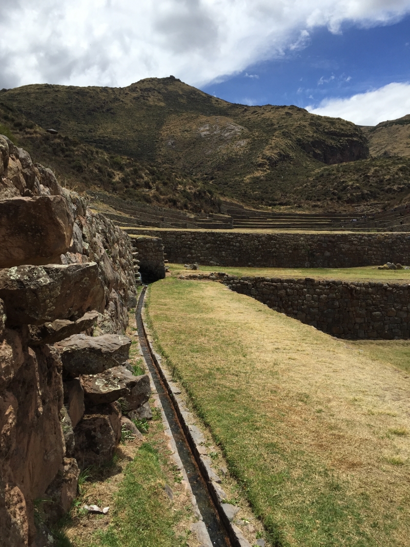 クスコからバスとタクシーを乗り継ぎ1時間かけても訪れたいのが、ここティポン。インカ時代の農業用の設備の遺跡です。今でも水が流れる灌漑設備がきちんと整備されています。
