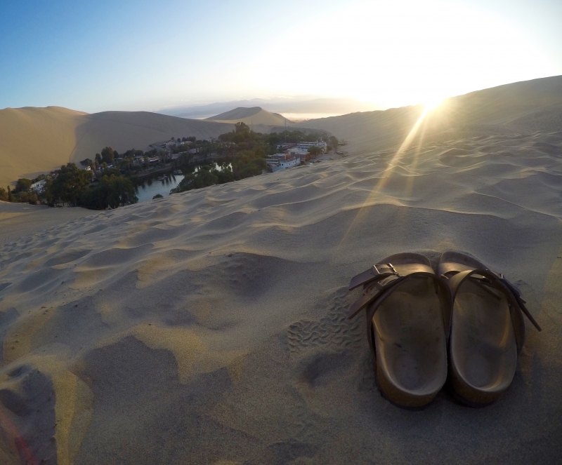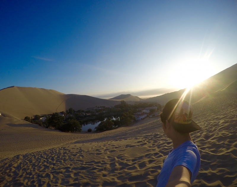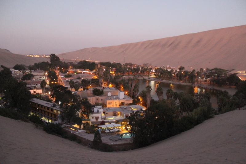 ツアーの最後は、ワカチナの町が見えるポイントで降ろされます。ここでは、夕暮れ時のワカチナを眺めることができます。薄暗いワカチナの町は、砂漠の暑さを癒してくれそうな、そんな気がします。