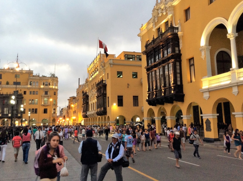 そのペルー政庁では、お昼に衛兵の交代式があり、高らかな音楽を演奏しながら行進する、華やかな衣装を着た軍楽団が観光客の注目を集めています。そのほかの主な建造物もほとんどが広場から数ブロック以内にあるので、コロニアル建造物巡りもぜひ楽しみたいですね!