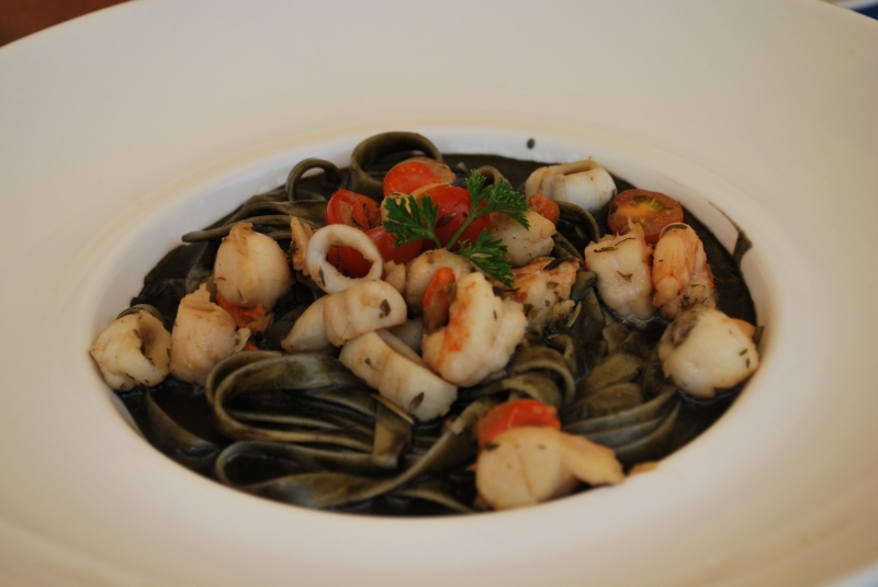 そして、こちらのもう1つのおすすめがイカスミパスタ。ペルー料理ではありませんが、こちらも近海で獲れた魚介類がたっぷり使われています。ソースの味付けは濃厚で、太めの麺によく絡んでとっても美味しいですよ。