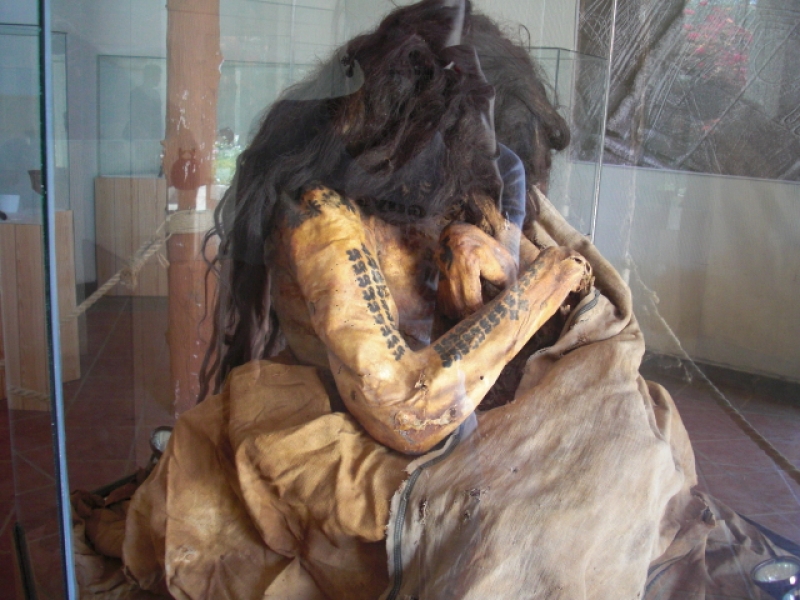 この辺りは雨がほとんど降らず、極度の感想地帯なので、古代人のミイラもたくさん残っているそう。「人形?!」と思うかもしれませんが、本物のミイラも展示されています。