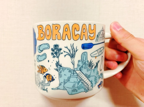 最後は、ボラカイ島デザインのオリジナルマグを購入できることです!ポップなデザインが非常に可愛く、筆者夫婦も思わず購入してしまいました。(値段:約1,400円)