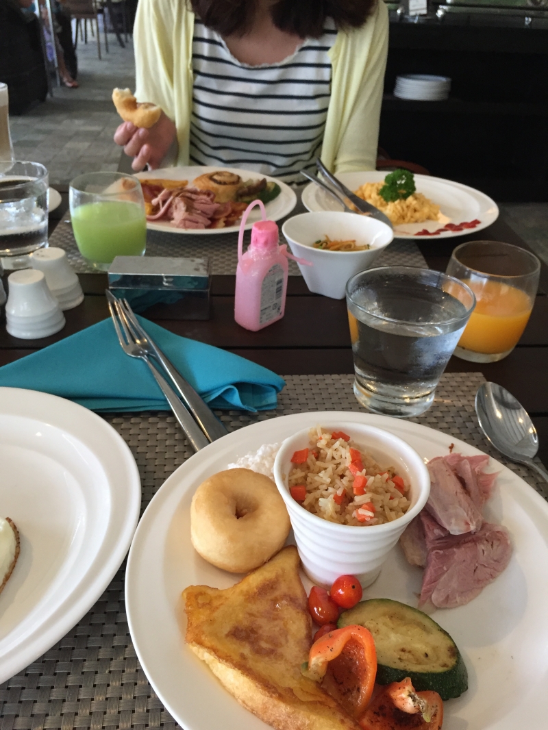 もちろんビュッフェ会場での朝食ビュッフェもおすすめです。部屋食ではチョイスできないタイ料理やサラダがあり、こちらでもおなかいっぱい食べることができます。