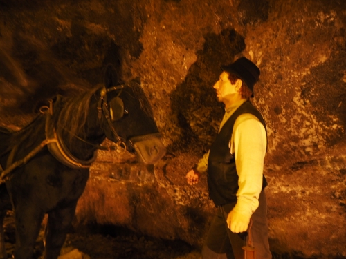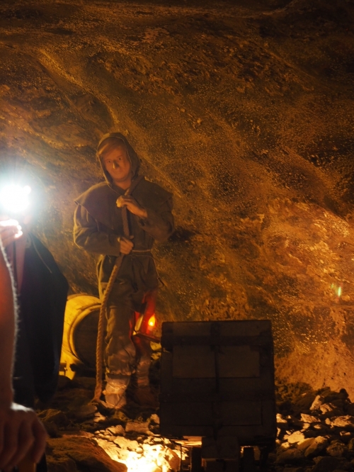 岩塩採掘がその昔どのように行われていたか、採掘作業の様子を再現したマネキンが置かれています。動くものもあって、とてもリアリティーがあります。坑内は薄暗いので、本当に人が動いているのか、と思うほど…!!