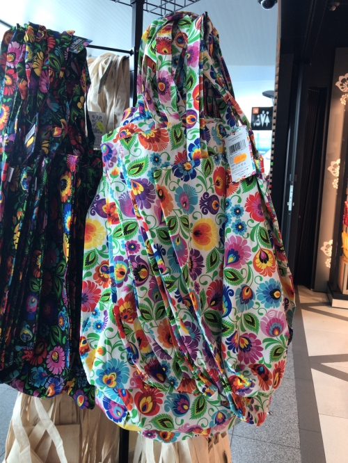 写真左のベージュがベースのバックは約700円、右の全部花柄模様のバックが約1,000円。どのデザインも可愛くて迷っちゃいます。